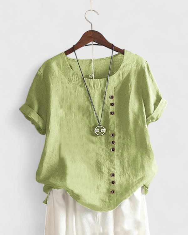 Sempre comoda. Esalta il tuo stile con la comoda blusa a maniche corte Elisavie, un perfetto mix di comfort ed eleganza per ogni occasione!
