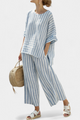 Elevate your summer wardrobe with this striped bamboo linen off-shoulder set—where comfort meets artisanal charm.
