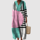 This eye-catching dress brings a fresh twist with its half-and-half design—classic black polka dots paired with vibrant royal blue. Its relaxed fit and asymmetric detail make it a standout choice for sunny days, casual outings, or artistic flair moments.